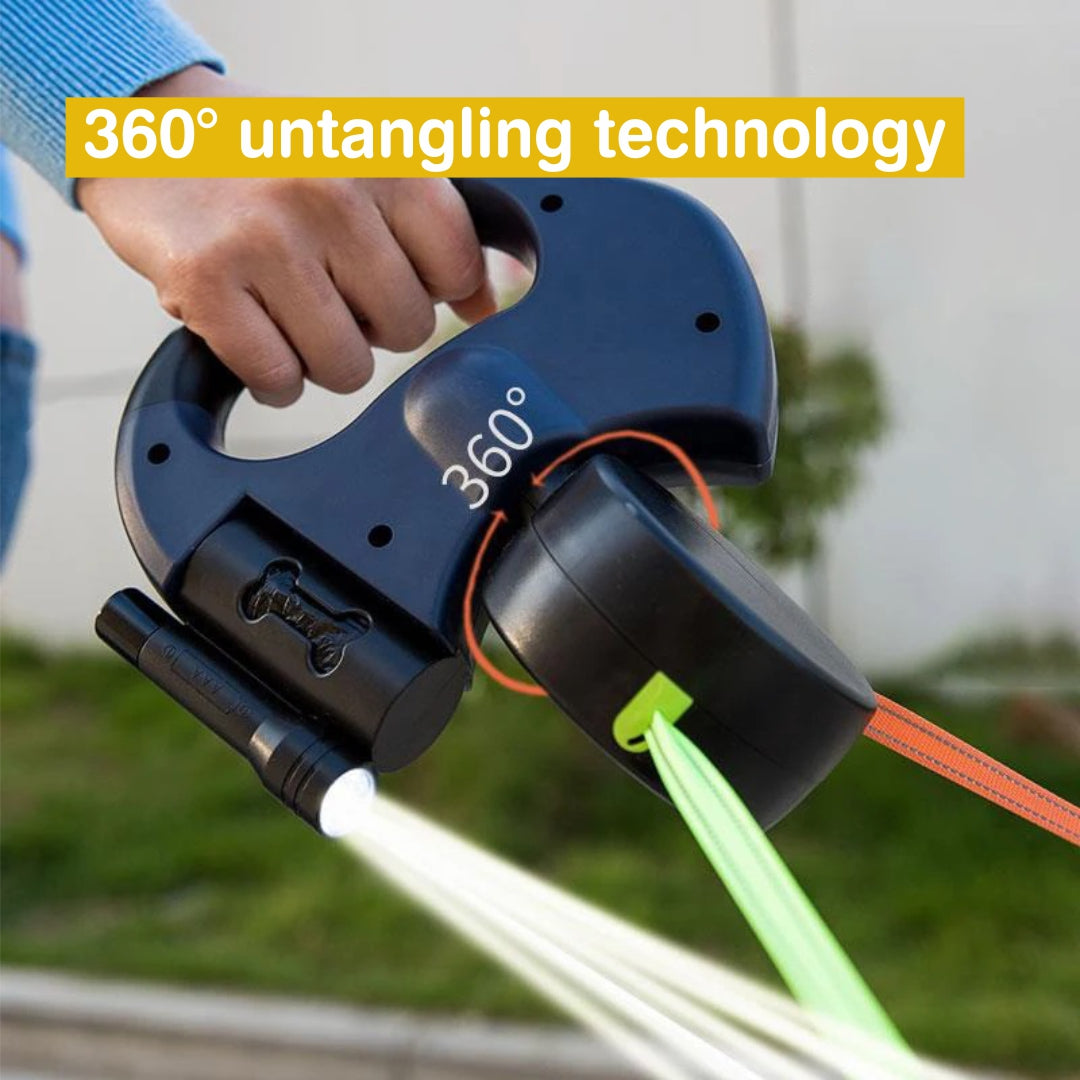 Step 5: Prevent Tangling. Thanks to the 360° untangling technology, your dogs can move freely without the ropes becoming tangled. If they cross paths, the leash will automatically untwist itself.
