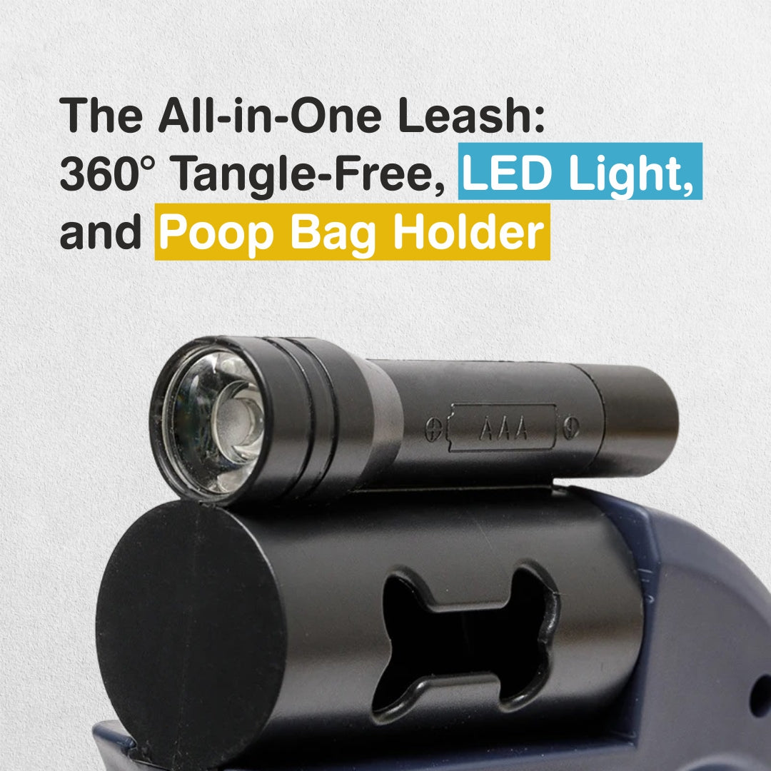 More Than Just a Leash: 360° Tangle-Free with LED & Poop Bag Holder